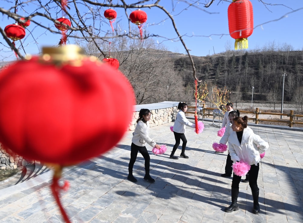 村廣場上,高高掛起的紅燈籠點綴出濃濃年味兒,“煙火氣”里升騰起新的希望。
