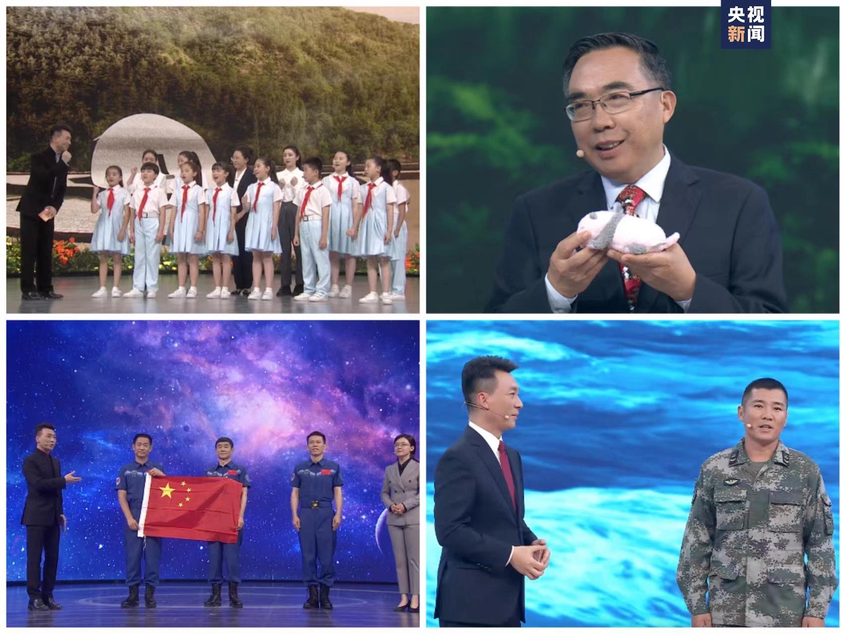 在節(jié)目現(xiàn)場,深潛團(tuán)隊(duì)、航天英雄團(tuán)隊(duì)、北京冬奧合唱團(tuán)隊(duì)、“熊貓爸爸”、“雙特標(biāo)兵”……各行各業(yè)的榜樣人物分享經(jīng)歷、暢談人生。
