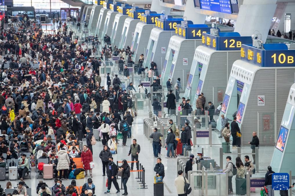 ??2024年2月17日,旅客在杭州東站候車大廳等待乘坐列車。新華社記者 江漢 攝