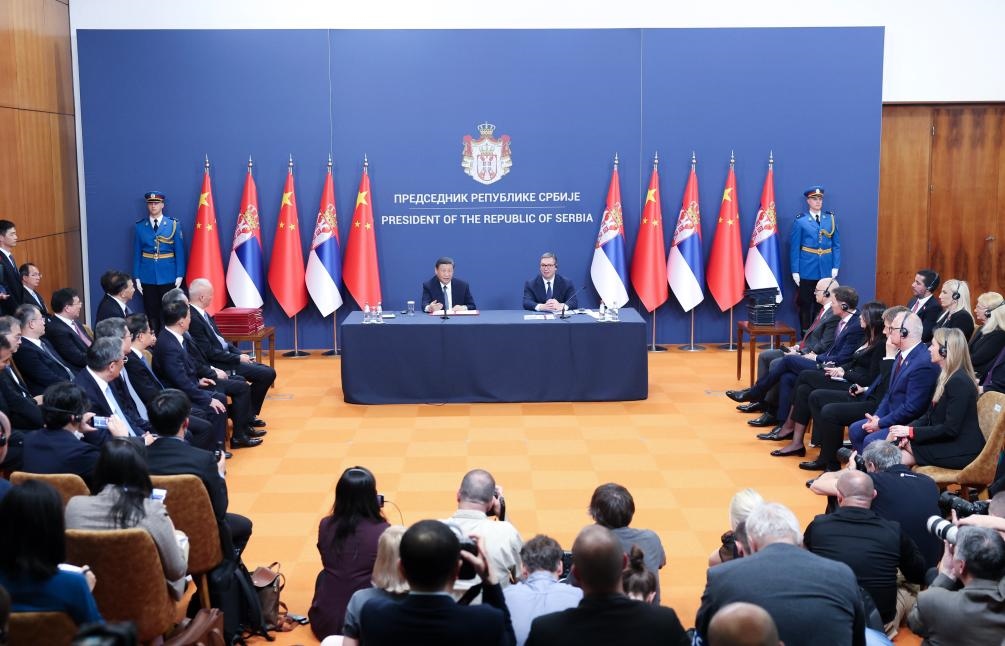 歡迎儀式后,國家主席習(xí)近平在貝爾格萊德塞爾維亞大廈同塞爾維亞總統(tǒng)武契奇舉行會談。