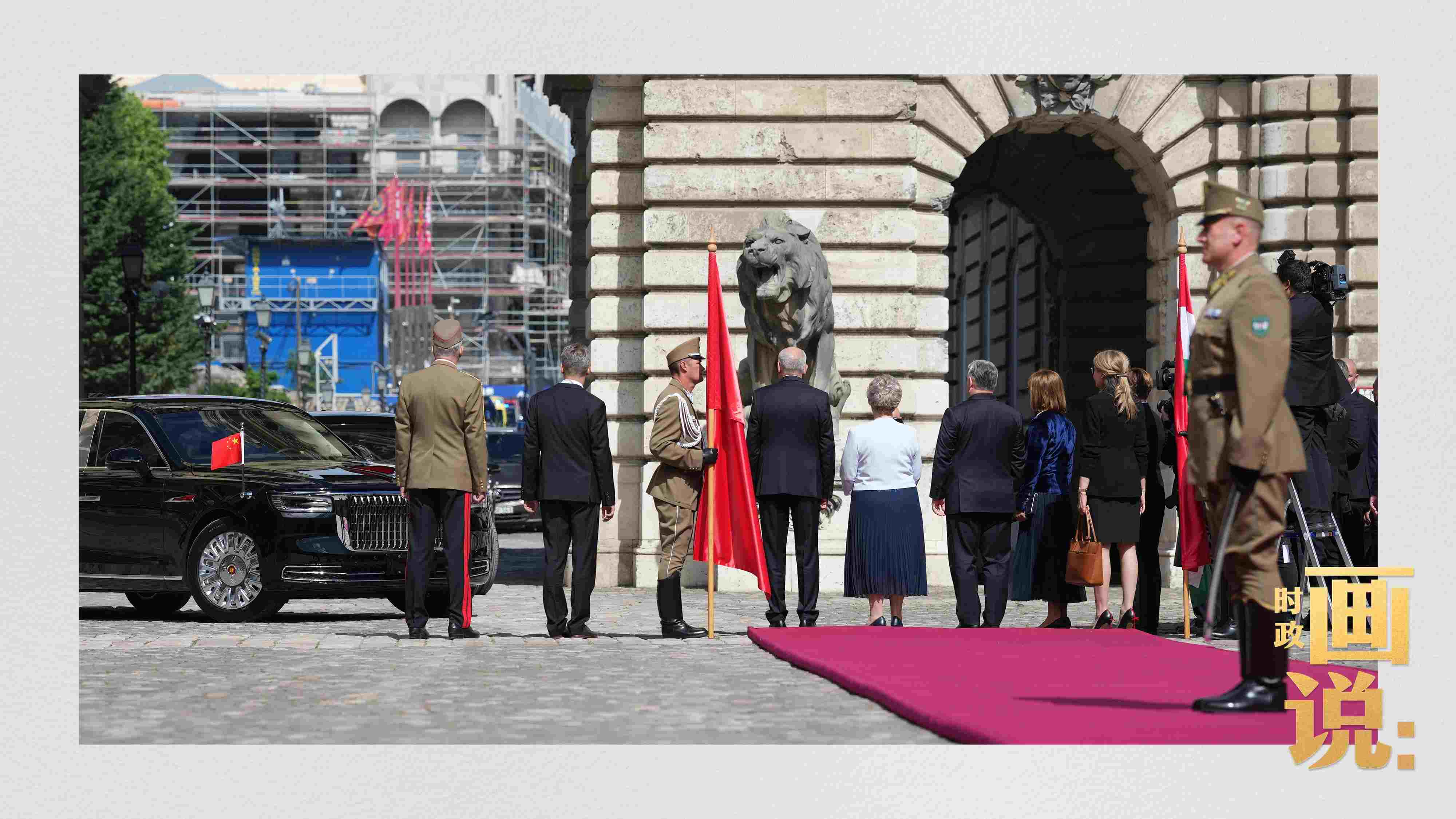 當(dāng)?shù)貢r間5月9日上午,習(xí)近平主席出席匈牙利總統(tǒng)舒尤克和總理歐爾班在布達王宮內(nèi)庭共同舉行的隆重歡迎儀式。