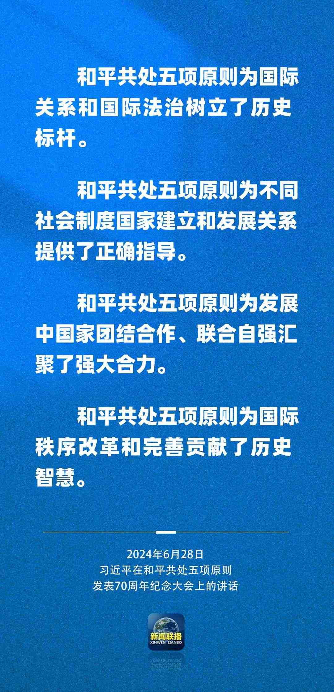 6月28日上午,國家主席習近平在北京人民大會堂出席和平共處五項原則發(fā)表70周年紀念大會并發(fā)表重要講話。