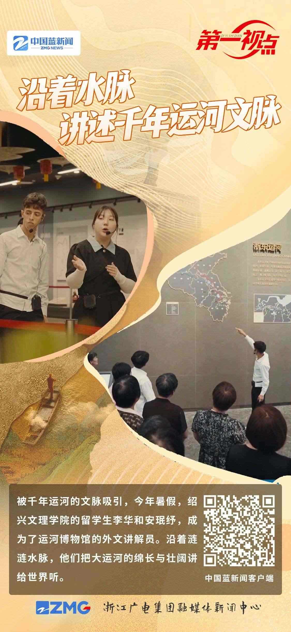 作為紹興文理學(xué)院留學(xué)生,李華和安珉紓被千年運(yùn)河的文脈吸引,成為運(yùn)河博物館的外文講解員。