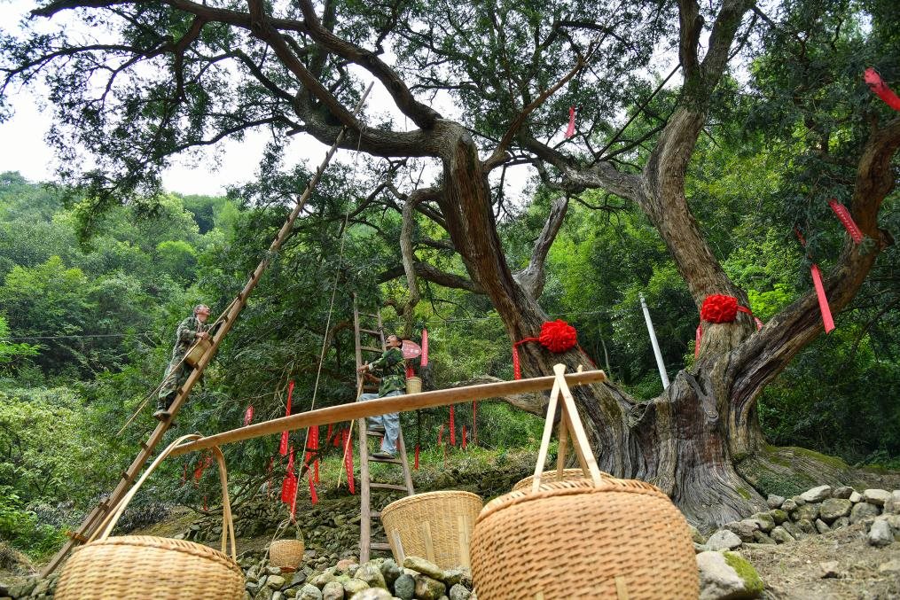 柯橋區(qū)稽東鎮(zhèn)古香榧樹在保護中煥發(fā)生機,成為當地老百姓的“致富樹”。(柯橋區(qū)委宣傳部供圖)