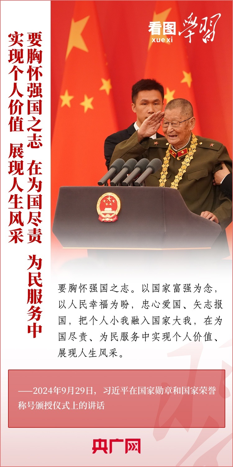 9月29日,中華人民共和國國家勛章和國家榮譽(yù)稱號(hào)頒授儀式在北京舉行,習(xí)近平總書記向國家勛章和國家榮譽(yù)稱號(hào)獲得者頒授勛章獎(jiǎng)?wù)虏l(fā)表重要講話??倳洀?qiáng)調(diào),全黨全國各族人民要以英雄模范為榜樣,團(tuán)結(jié)奮進(jìn)、砥礪前行,匯聚起共襄強(qiáng)國盛舉的磅礴力量。一起來學(xué)習(xí)!