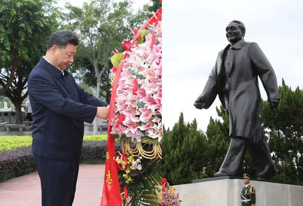△2020年10月14日,深圳經(jīng)濟(jì)特區(qū)建立40周年慶祝大會在廣東深圳市隆重舉行,習(xí)近平總書記在會上發(fā)表重要講話。這是當(dāng)天下午,總書記來到蓮花山公園,向鄧小平同志銅像敬獻(xiàn)花籃。