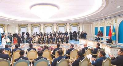 習(xí)近平同哈薩克斯坦總統(tǒng)托卡耶夫共同出席兩國(guó)文化中心和北京語言大學(xué)哈薩克斯坦分校揭牌儀式 當(dāng)?shù)貢r(shí)間7月3日中午,國(guó)家主席習(xí)近平同哈薩克斯坦總統(tǒng)......