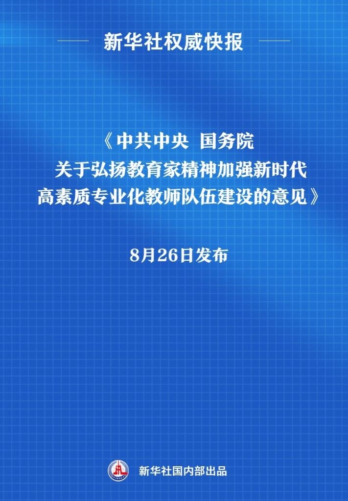 《中共中央 國(guó)務(wù)院關(guān)于弘揚(yáng)教育家精神加強(qiáng)新時(shí)代高素質(zhì)專業(yè)化教師隊(duì)伍建設(shè)的意見(jiàn)》8月26日發(fā)布。