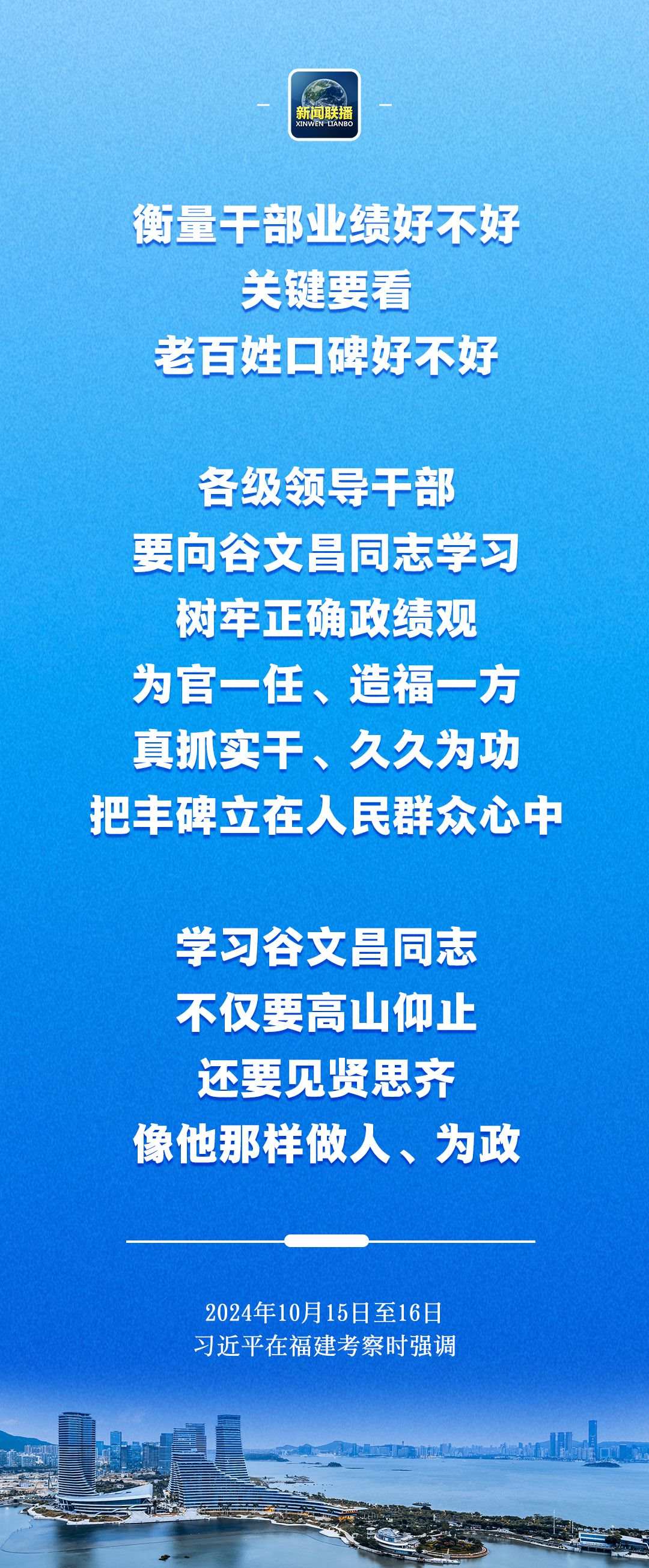 習(xí)近平在谷文昌紀(jì)念館考察時(shí)指出,衡量干部業(yè)績好不好,關(guān)鍵要看老百姓口碑好不好。各級領(lǐng)導(dǎo)干部要向谷文昌同志學(xué)習(xí),樹牢正確政績觀,為官一任、造福一方,真抓實(shí)干、久久為功,把豐碑立在人民群眾心中。學(xué)習(xí)谷文昌同志,不僅要高山仰止,還要見賢思齊,像他那樣做人、為政。
