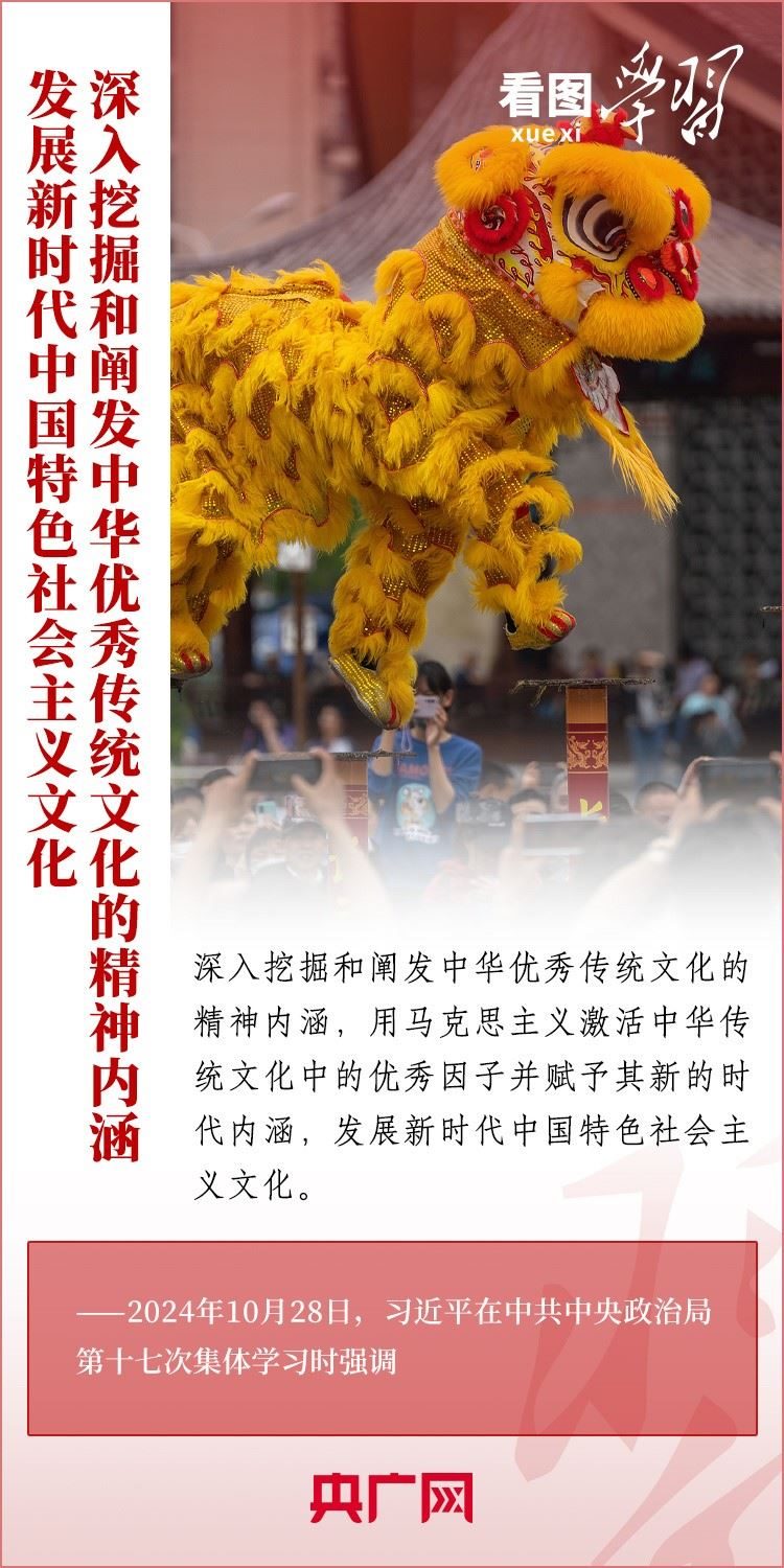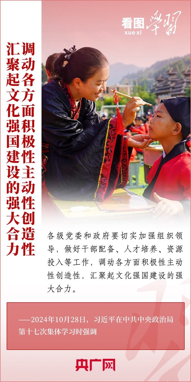 建設(shè)文化強(qiáng)國(guó)是全黨全社會(huì)的共同任務(wù)。10月28日,中共中央政治局就建設(shè)文化強(qiáng)國(guó)進(jìn)行第十七次集體學(xué)習(xí)。習(xí)近平總書(shū)記在聽(tīng)取講解和討論后發(fā)表重要講話,就錨定2035年建成文化強(qiáng)國(guó)戰(zhàn)略目標(biāo)作出最新部署,強(qiáng)調(diào)要“不斷發(fā)展具有強(qiáng)大思想引領(lǐng)力、精神凝聚力、價(jià)值感召力、國(guó)際影響力的新時(shí)代中國(guó)特色社會(huì)主義文化,不斷增強(qiáng)人民精神力量,筑牢強(qiáng)國(guó)建設(shè)、民族復(fù)興的文化根基。”一起來(lái)學(xué)習(xí)!