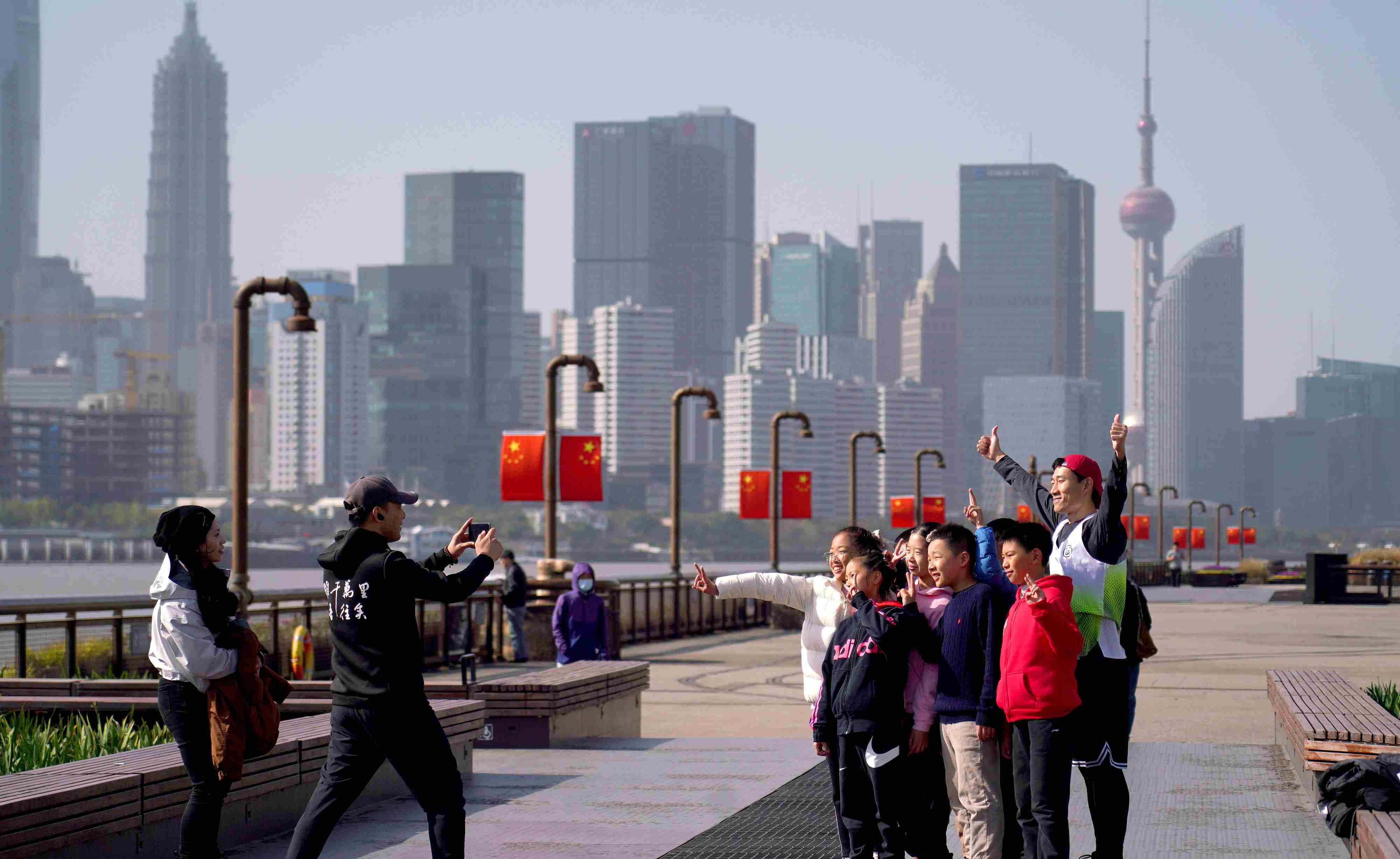 △ 2023年11月17日,市民游客在上海楊浦濱江岸線觀光拍照。