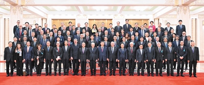 11月8日晚,國家主席習近平在北京同意大利總統(tǒng)馬塔雷拉共同會見出席中意文化合作機制大會和中意大學校長對話會的雙方代表。這是會見前,兩國元首同雙方代表合影留念。新華社記者 申 宏攝