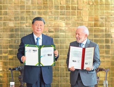 當(dāng)?shù)貢r(shí)間十一月二十日上午,國家主席習(xí)近平同巴西總統(tǒng)盧拉在巴西利亞共同簽署并發(fā)表《中華人民共和國和巴西聯(lián)邦共和國關(guān)于攜手構(gòu)建更公正世界和更可持續(xù)星球的中巴命運(yùn)共同體的聯(lián)合聲明》。