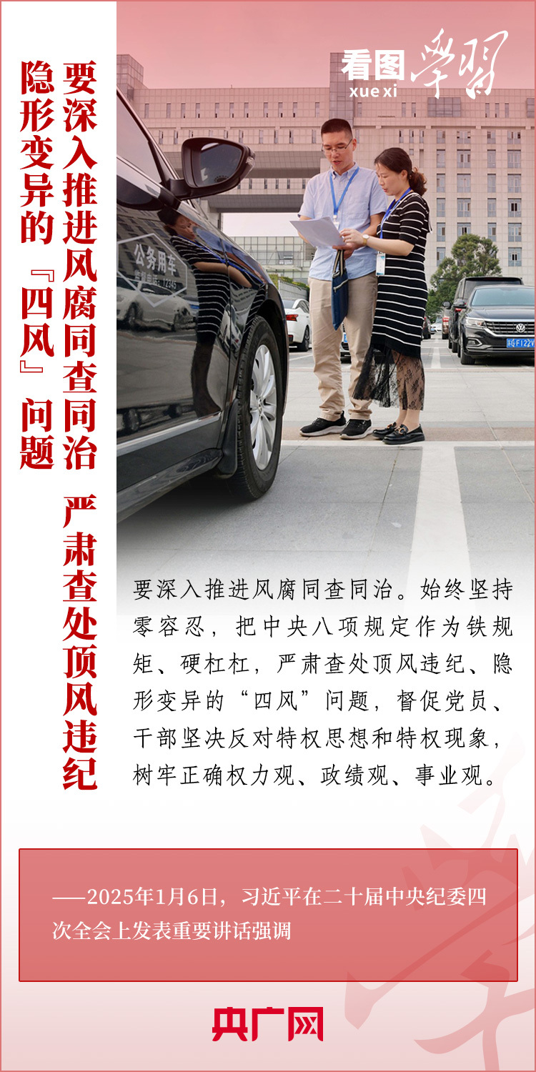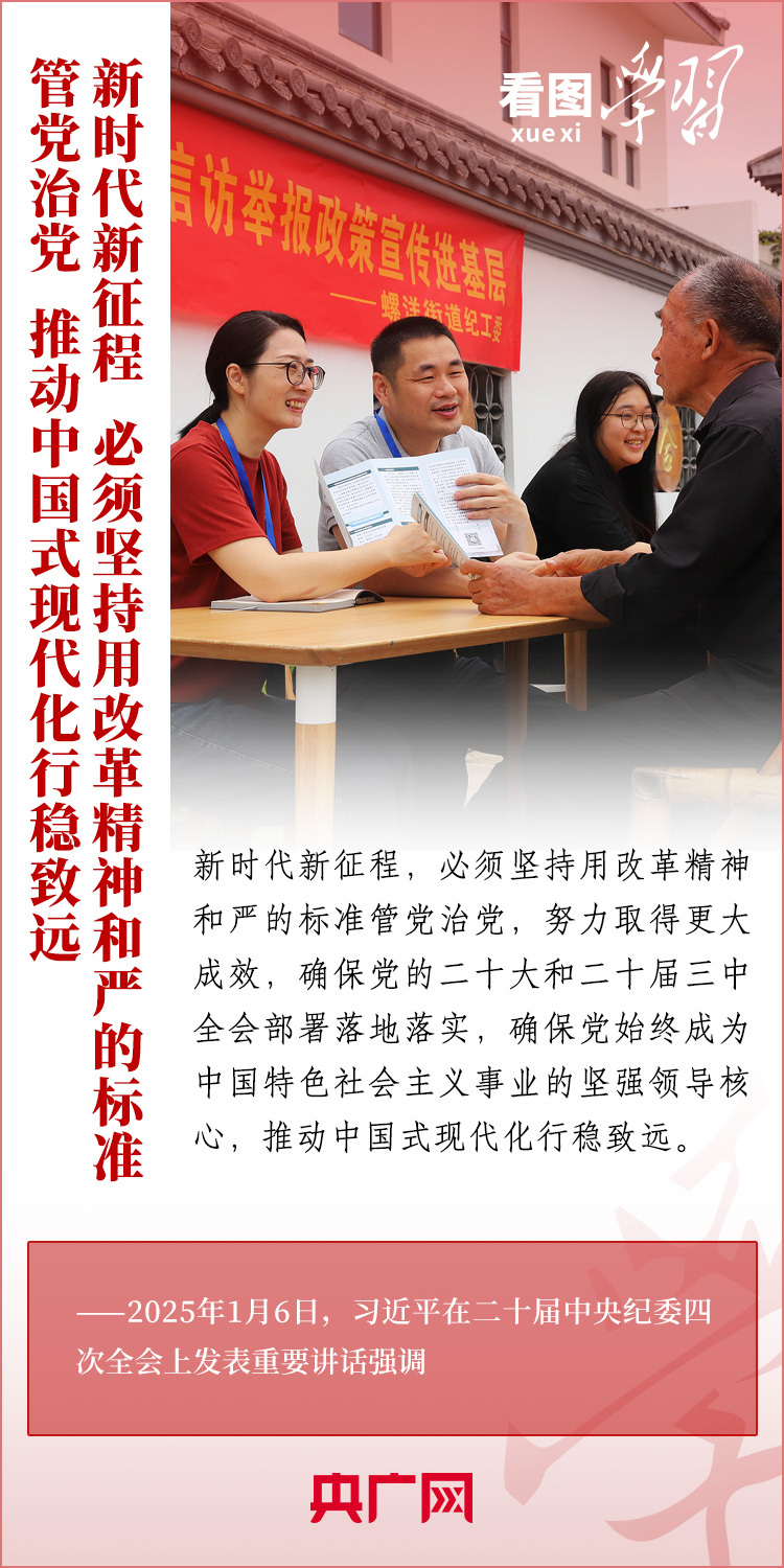 1月6日,習(xí)近平總書記在二十屆中央紀(jì)委四次全會(huì)上發(fā)表重要講話,充分肯定過去一年全面從嚴(yán)治黨取得的新進(jìn)展、新成效,深刻分析當(dāng)前反腐敗斗爭形勢,對堅(jiān)決打好反腐敗斗爭攻堅(jiān)戰(zhàn)、持久戰(zhàn)、總體戰(zhàn)提出明確要求??倳洀?qiáng)調(diào),新時(shí)代新征程,必須堅(jiān)持用改革精神和嚴(yán)的標(biāo)準(zhǔn)管黨治黨,努力取得更大成效,確保黨的二十大和二十屆三中全會(huì)部署落地落實(shí),確保黨始終成為中國特色社會(huì)主義事業(yè)的堅(jiān)強(qiáng)領(lǐng)導(dǎo)核心,推動(dòng)中國式現(xiàn)代化行穩(wěn)致遠(yuǎn)。一起來學(xué)習(xí)!
