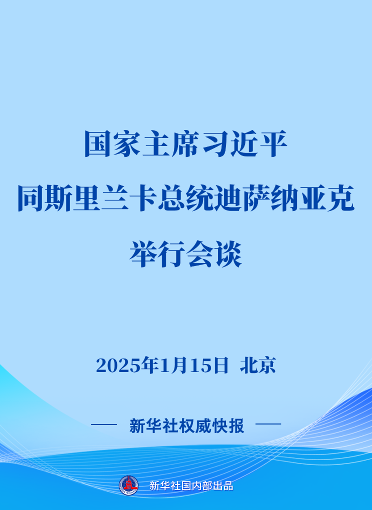 1月15日下午,國家主席習近平在北京人民大會堂同來華進行國事訪問的斯里蘭卡總統(tǒng)迪薩納亞克舉行會談。