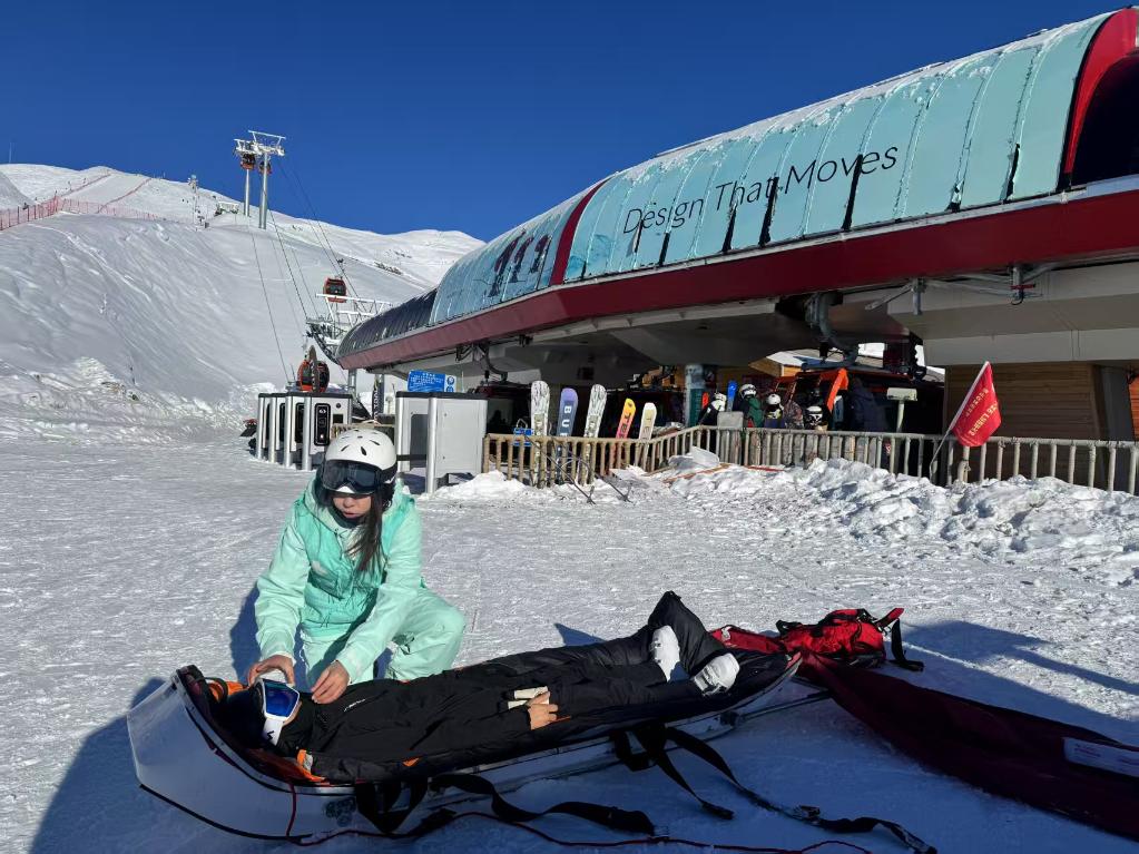 一次巡邏時,帕提曼看到一名雪友橫躺在雪道中間,雪板被甩出很遠,上前查看后發(fā)現(xiàn)其大腿骨折。她立即進行夾板固定、紗布包扎等操作,隨后協(xié)助轉運傷員。