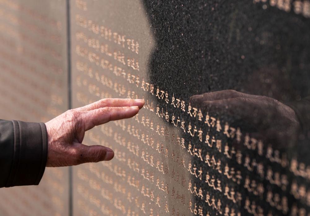 這里鮮紅底色閃耀??姑涝沂苛陥@長眠著邱少云、黃繼光等家喻戶曉的志愿軍烈士。