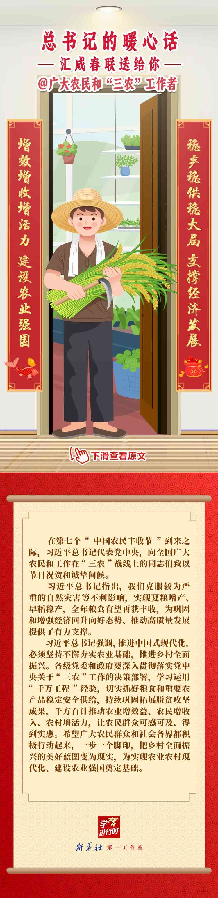 【學習進行時】過春節(jié),貼春聯(lián),寄托人們對新年的美好愿望。過去一年,習近平總書記在不同場合點贊各行各業(yè)奮斗者,說了許多暖心話。新春之際,我們匯編成聯(lián),向新征程上的每一位“主角”致敬,送上新春的祝福。