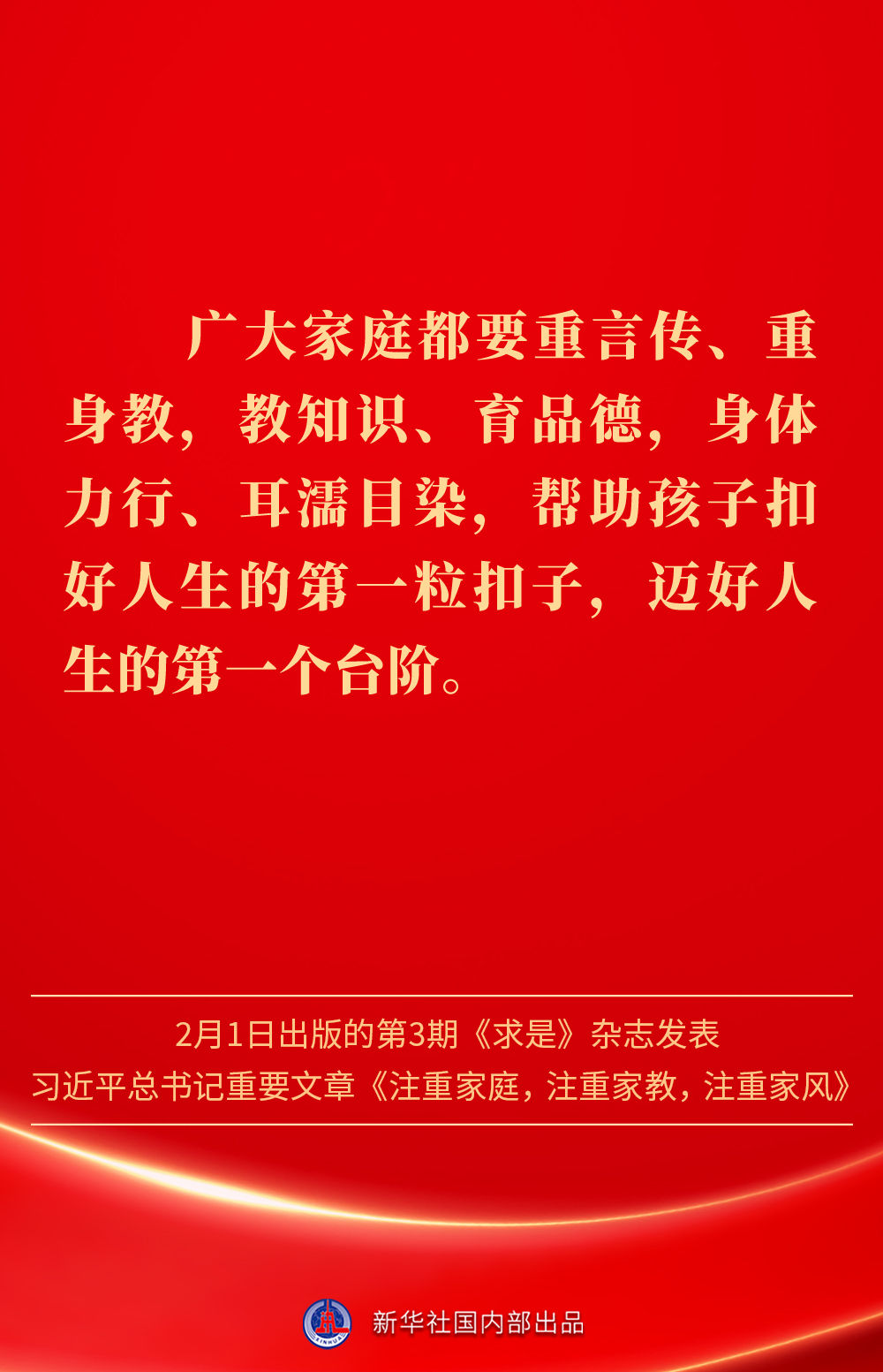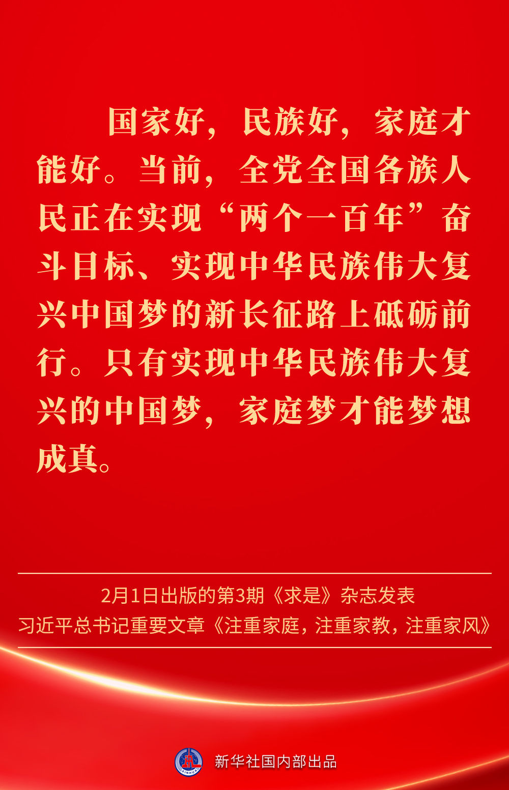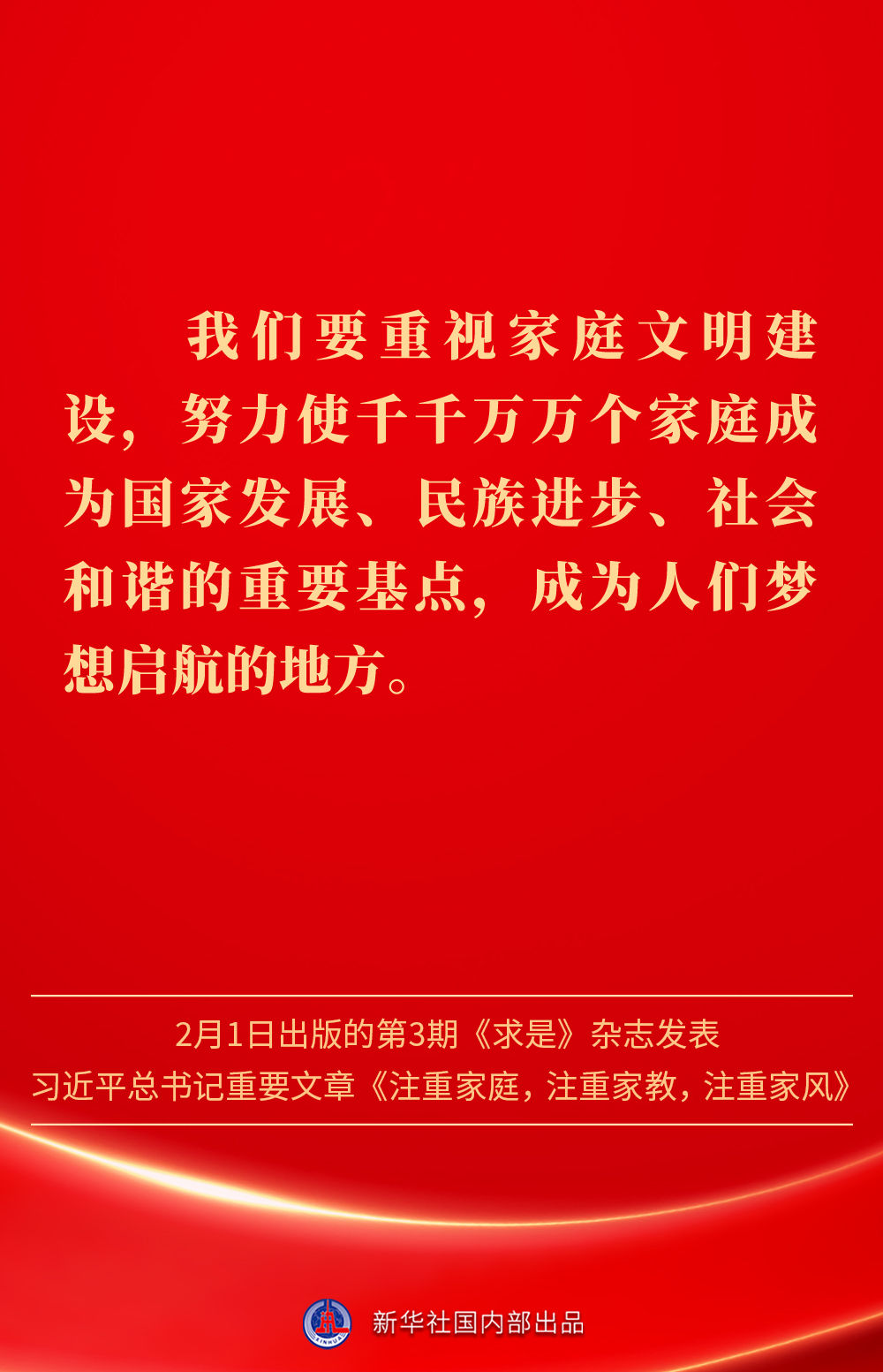 萬家團圓共慶新春佳節(jié)之際,2月1日出版的第3期《求是》雜志發(fā)表習近平總書記重要文章《注重家庭,注重家教,注重家風》。為什么要注重家庭、家教、家風?如何做好家庭文明建設?習近平總書記這樣闡述——