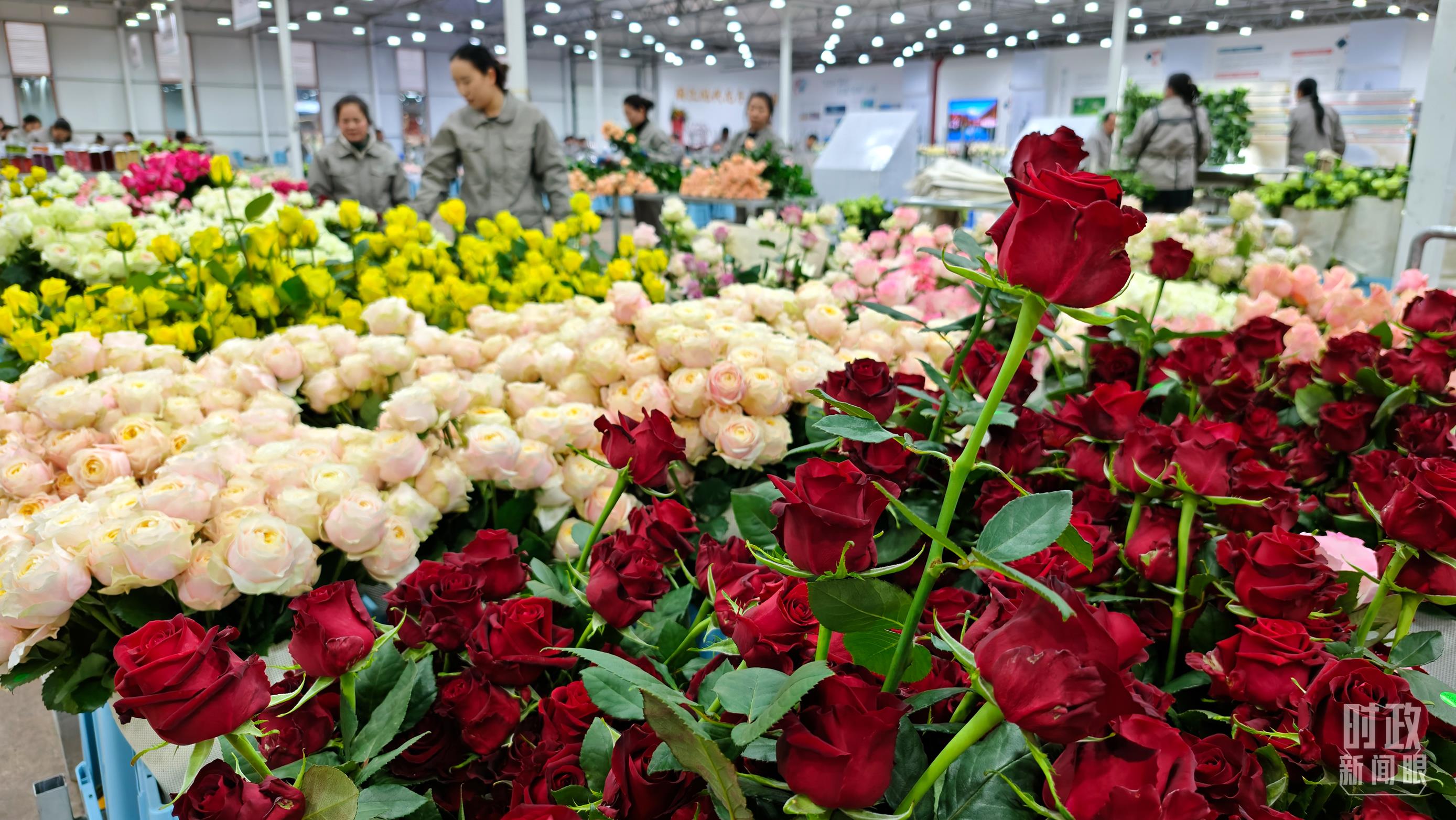 △工人正在對采摘下來的鮮花進(jìn)行整理、分類。(總臺央視記者邢彬拍攝)