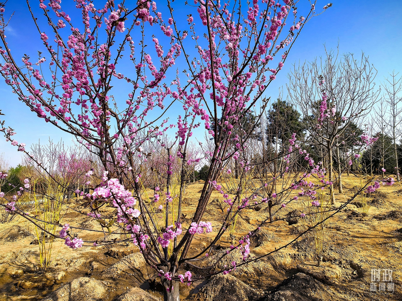 △永定河畔植樹點,春意上枝頭。(總臺央視記者胡瑋、程鋮拍攝)