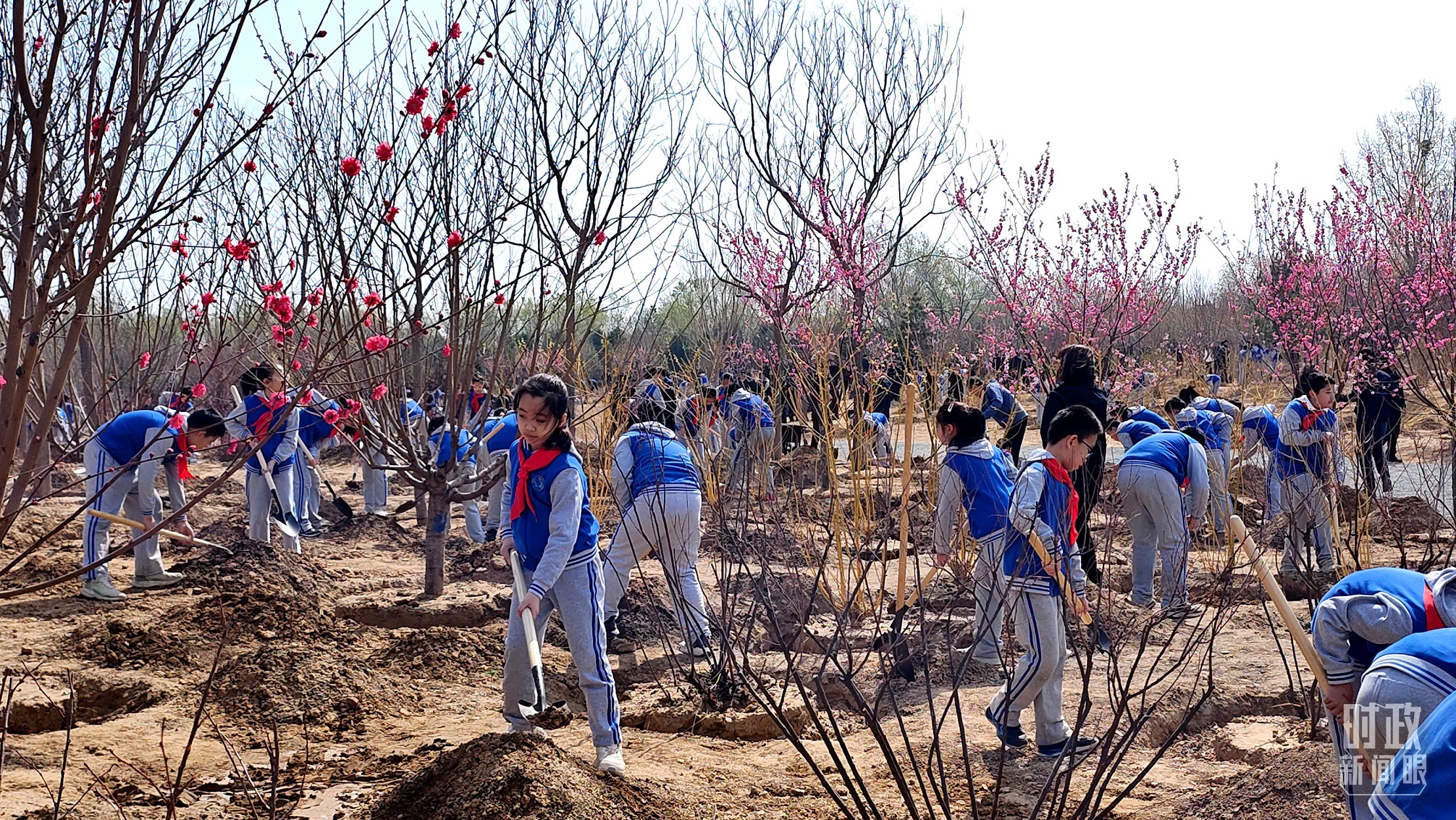 △植樹現(xiàn)場的少先隊員。(總臺央視記者韓銳、趙龍拍攝)