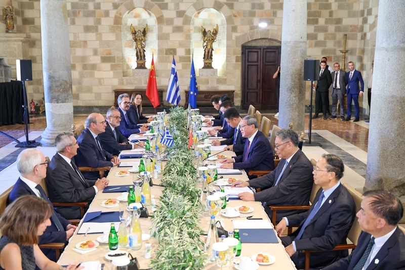 當(dāng)?shù)貢r(shí)間7月4日下午,國務(wù)院總理李強(qiáng)在希臘羅德島會見希臘副總理哈齊達(dá)基斯。新華社記者 劉彬 攝