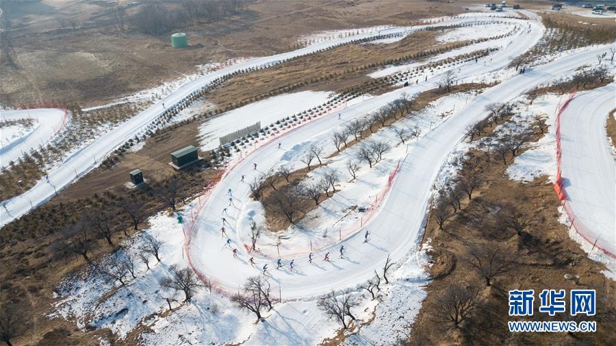 1月11日至1月15日,2018-2019年度全國青少年越野滑雪錦標(biāo)賽在內(nèi)蒙古烏蘭察布市涼城縣岱海滑雪場舉行。這是選手在青年組男子30公里集體出發(fā)(自由技術(shù))比賽中(1月12日攝)。新華社記者彭源攝