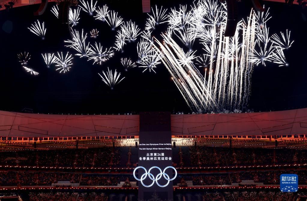 2月4日,開幕煙花在鳥巢上空綻放。當(dāng)日,第24屆冬季奧運(yùn)會(huì)開幕式在北京舉行。新華社記者陳建力攝