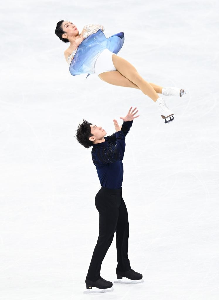 2月19日,中國選手隋文靜(上)/韓聰在比賽中。新華社記者蘭紅光攝