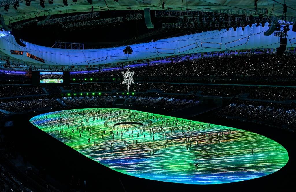 “我和你,心連心,同住地球村……”當(dāng)孩子們?cè)俅纬憽段液湍恪?,五環(huán)以與2008年同樣的方式升起,與“大雪花”火炬交錯(cuò)落下。兩屆奧運(yùn)在此交匯。從2008到2022,“雙奧之城”為奧林匹克添上新的榮光。
