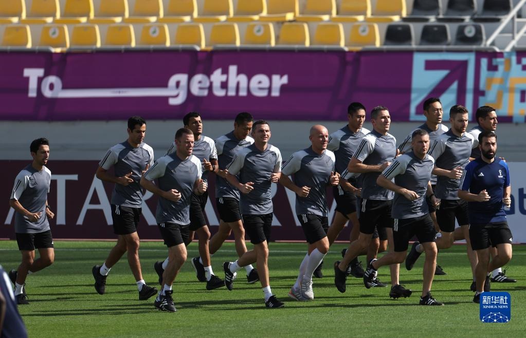 當日,入選2022年卡塔爾世界杯裁判員名單的中國裁判馬寧、曹奕與施翔在卡塔爾體育俱樂部球場進行訓(xùn)練。