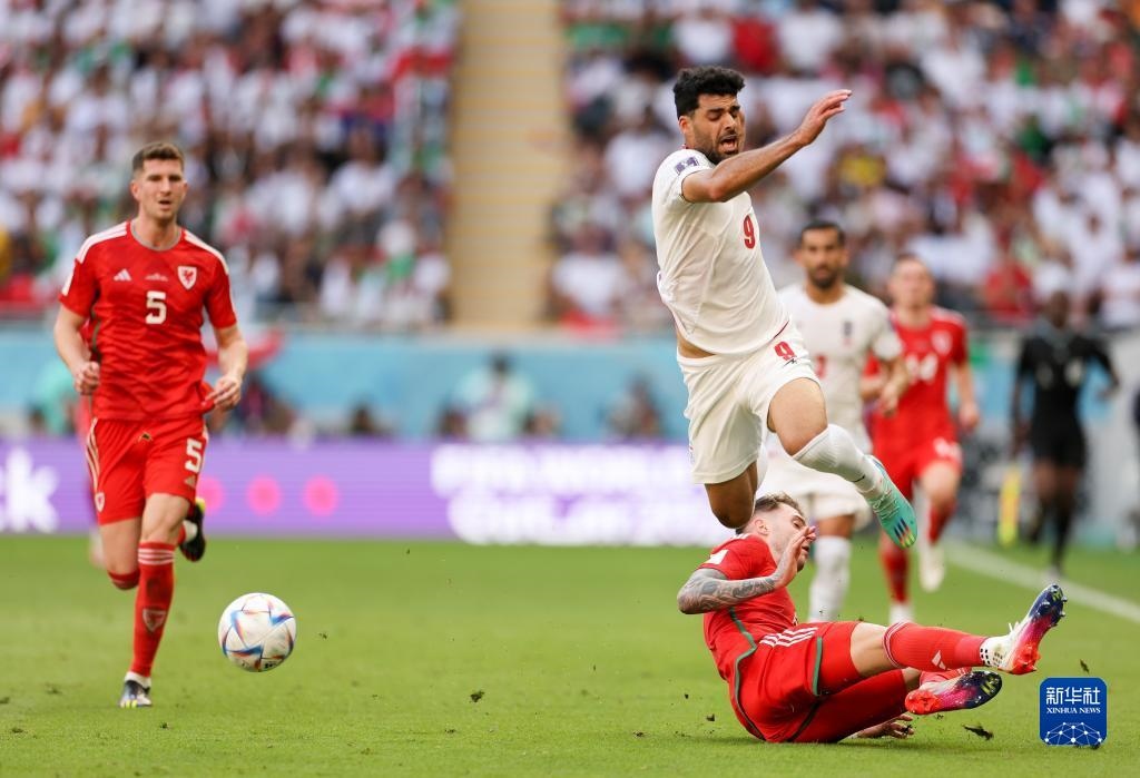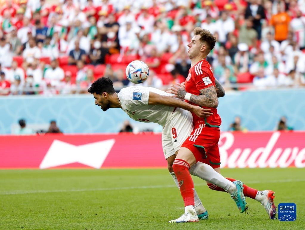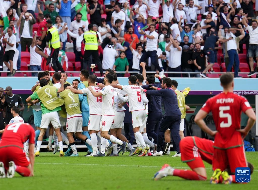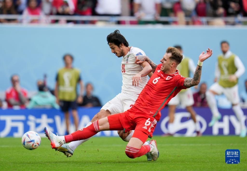 當(dāng)日,在卡塔爾多哈艾哈邁德·本·阿里體育場進(jìn)行的2022卡塔爾世界杯足球賽B組比賽中,伊朗隊以2比0戰(zhàn)勝威爾士隊。