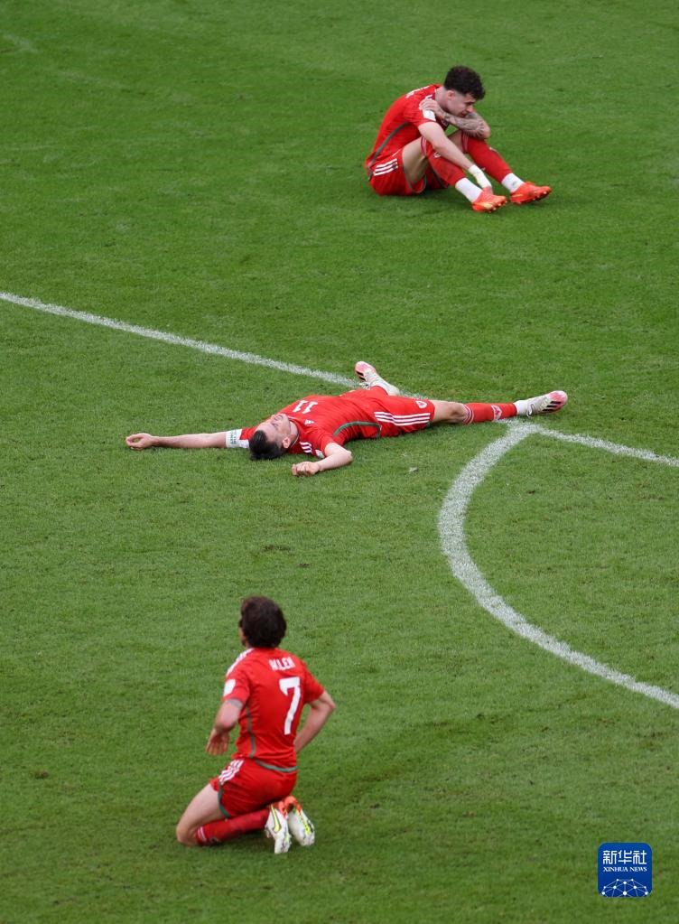 11月25日,威爾士隊球員加雷斯·貝爾(中)在本隊被打入第一粒進(jìn)球后。新華社記者 賈浩成 攝