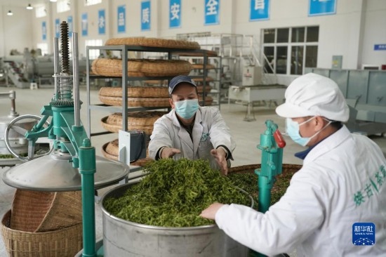4月6日,工作人員在紫陽(yáng)縣煥古鎮(zhèn)一家茶企車(chē)間內(nèi)工作。