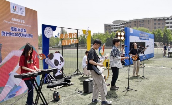 4月19日,成都第31屆世界大學(xué)生夏季運(yùn)動(dòng)會(huì)倒計(jì)時(shí)100天青春歌會(huì)活動(dòng)在清華大學(xué)舉行。新華社記者 李欣 攝