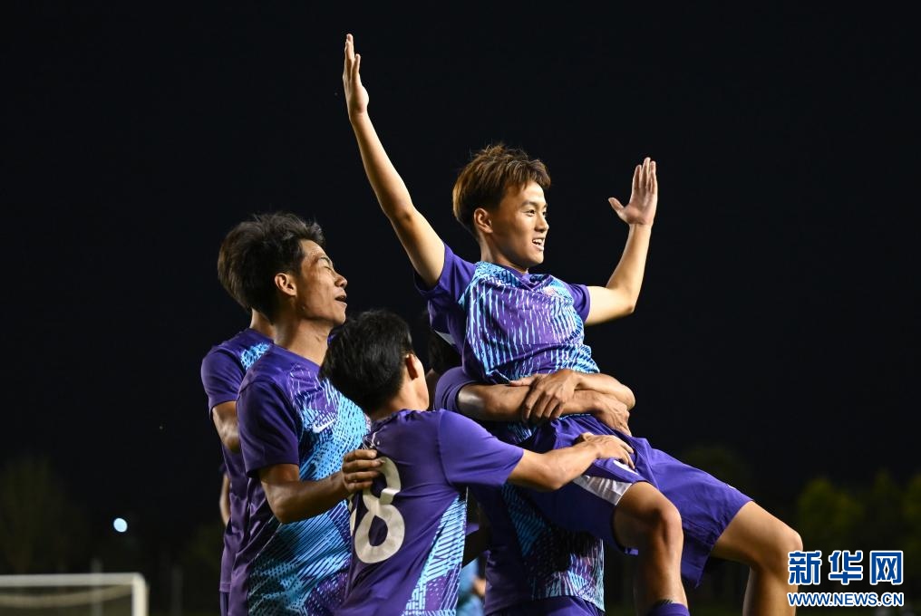 ??6月15日,浙江俱樂部U21隊(duì)球員王鈺棟在比賽中慶祝進(jìn)球。