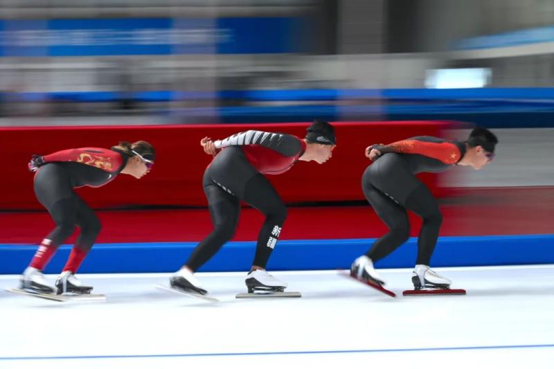 這支由各省市精英組成的隊伍,年齡跨度從17歲到30歲左右,每個人的履歷都寫滿賽場榮光。他們肩負著為國家爭光的使命,懷揣著對冰雪運動的熱愛,在呼倫貝爾這片運動場上拼盡全力。而武大靖的轉型,更是為這支隊伍增添了厚重的使命感。從短道速滑到速度滑冰,對這位老將而言是不小的挑戰(zhàn)?!跋热〉眠M入米蘭的資格是關鍵,一步一個腳印,只要努力到位,站在賽場上就已經(jīng)成功了一半。”武大靖說,“在這可以看到很多優(yōu)秀的小朋友們,也是內蒙古的后備人才,一起在這進行訓練,能相互交流、共同進步?!庇柧氈校贿叴蚰バ录?,一邊為后輩校準動作,冰刀劃出的軌跡里,既有個人突破的執(zhí)著,更有薪火相傳的溫情。