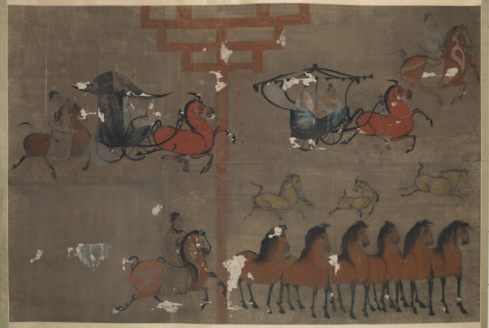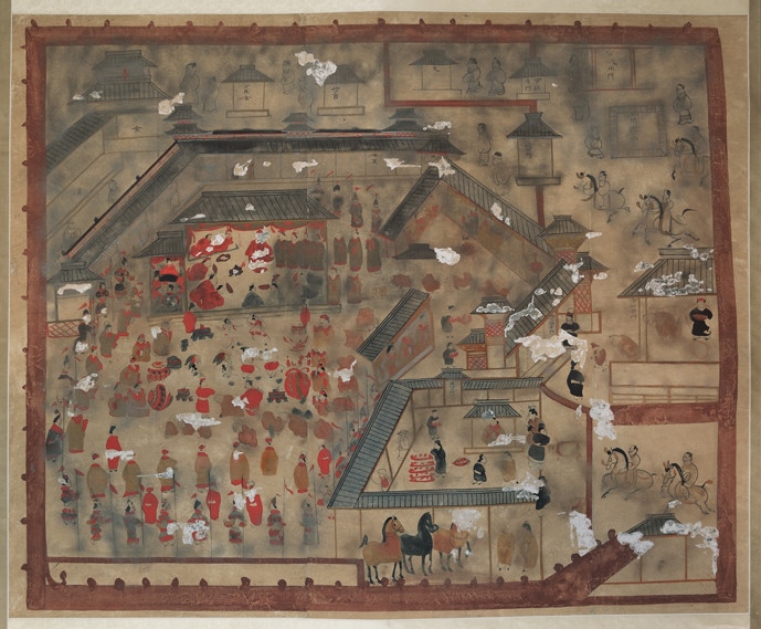 他,眼神堅(jiān)定,峨冠博帶,身著華服位于畫面中央,周圍有疾馳的駿馬、彪悍的武士、精彩奇絕的樂舞百戲……這些畫面看上去遙遠(yuǎn)而陌生。
