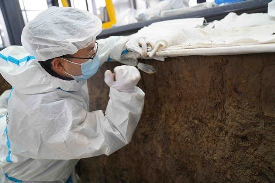 在三星堆遺址,考古發(fā)掘現(xiàn)場被大跨度鋼結(jié)構(gòu)大棚覆蓋,里面有數(shù)個“考古發(fā)掘艙”,不僅能控制溫度、濕度,還能減少工作人員從外界帶入的物質(zhì)干擾。而眼前的考古工作者,更像在實驗室工作,穿著全副武裝的白色“防護(hù)服”,趴在“非接觸式裝置”上,懸在祭祀坑上方,拍照、清理……頗有科幻電影的即視感。