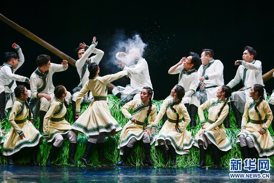 1月12日,演員在2022年內(nèi)蒙古新年舞蹈晚會(huì)中表演舞蹈《各族兒女行進(jìn)在陽光里》。新華網(wǎng)發(fā)(王正攝)