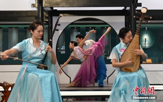 9月1日,表演者演繹中國(guó)傳統(tǒng)器樂(lè)和舞蹈。當(dāng)日,杭州亞運(yùn)會(huì)主媒體中心舉行媒體開放日活動(dòng),現(xiàn)場(chǎng)亮相的科技與傳統(tǒng)文化項(xiàng)目引人體驗(yàn)。中新社記者 王剛 攝