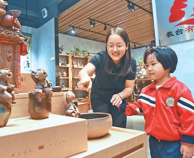 河北省新樂市,市民在參觀文創(chuàng)作品。 賈敏杰攝(新華社發(fā))