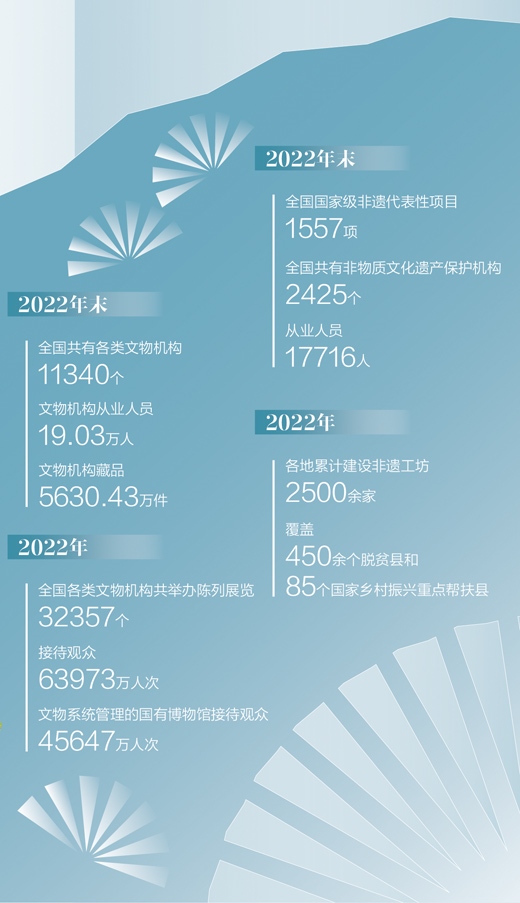 從成都大運會到杭州亞運會,傳統(tǒng)與現(xiàn)代碰撞交融的“中國式浪漫”吸引全球目光;博物館觀眾數(shù)量“井噴式”增長,數(shù)字展覽琳瑯滿目,技術(shù)與藝術(shù)融合的文化新業(yè)態(tài)呈現(xiàn)生機活力……近年來,中華文明探源工程持續(xù)推進,中華優(yōu)秀傳統(tǒng)文化傳承發(fā)展工程深入實施,文物和文化遺產(chǎn)的多重價值得到充分挖掘,古老的文化遺產(chǎn)在中華大地煥發(fā)新的時代光彩。