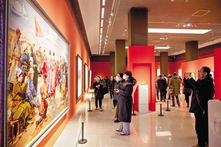12月30日,元旦假期第一天,中國美術(shù)館內(nèi)“蒙古馬精神——內(nèi)蒙古美術(shù)攝影作品展”前來觀展的觀眾絡(luò)繹不絕。展出的130多件藝術(shù)作品生動(dòng)反映了內(nèi)蒙古各族人民牢記囑托、感恩奮進(jìn),努力完成習(xí)近平總書記交給內(nèi)蒙古的五大任務(wù)和全方位建設(shè)模范自治區(qū)的火熱實(shí)踐,全面展示了內(nèi)蒙古壯美和美善美、可信可親可愛的新時(shí)代形象。