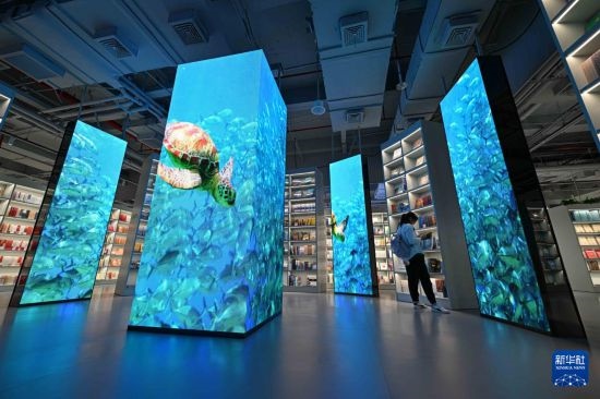 位于海口的新華書店海島書香店結合海南特色,營造熱帶海洋島嶼環(huán)境藝術空間,成為集閱購、研學、親子、文創(chuàng)陳展和藝術交流等功能于一體的開放場所。同時,該店連線各類圖書數據庫,為讀者提供海量數字閱讀產品,滿足讀者文化消費需求。