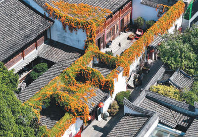 3月初,福州市三坊七巷歷史文化街區(qū)內(nèi)的炮仗花盛開,與白墻黛瓦的古厝相映,形成亮麗的風(fēng)景。