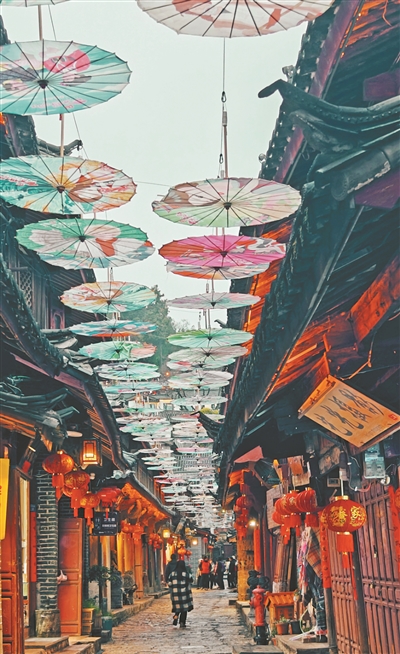 麗江古城涵蓋了作為茶馬古道重鎮(zhèn)的大研古城、從農(nóng)耕文明向商業(yè)文明過渡的“活標(biāo)本”束河古鎮(zhèn)、有著原生態(tài)納西村落的白沙古鎮(zhèn),融匯了漢族、白族、彝族、藏族、納西族等多民族文化特色。作為一座沒有城墻的古城,麗江古城以包容與開放的姿態(tài),歷經(jīng)文化的交融與碰撞,源源不斷地孕育出充滿魅力的文化新形態(tài)。