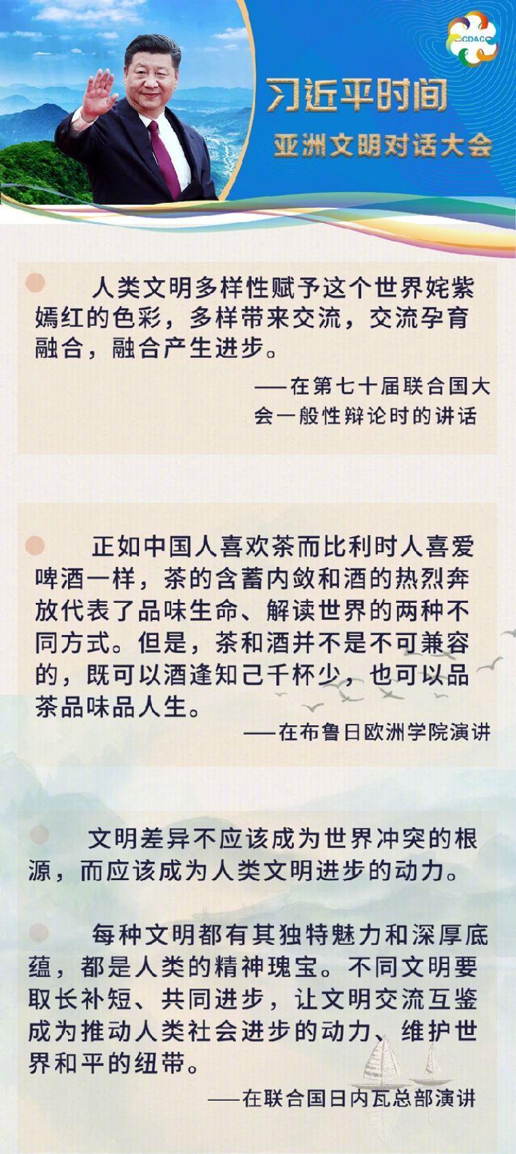 “中方倡議召開亞洲文明對(duì)話大會(huì),加強(qiáng)青少年、民間團(tuán)體、地方、媒體等各界交流,打造智庫(kù)交流合作網(wǎng)絡(luò),讓亞洲人民享受更富內(nèi)涵的精神生活,讓地區(qū)發(fā)展合作更加活力四射。”