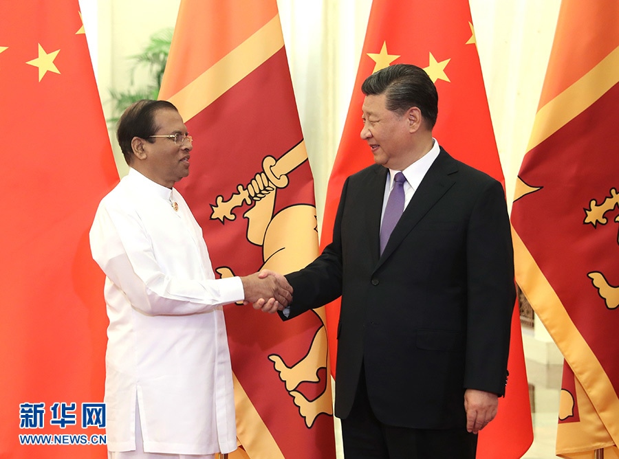 國家主席習(xí)近平14日在人民大會(huì)堂會(huì)見來華出席亞洲文明對(duì)話大會(huì)的斯里蘭卡總統(tǒng)西里塞納。